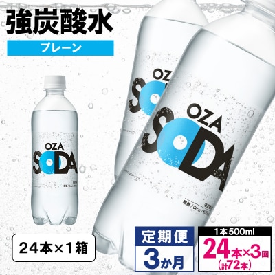 【定期便3回】OZA SODA 強炭酸水500ml×24本×3か月[プレーン]FZ24-253