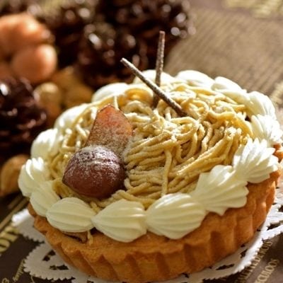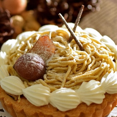 四万十栗と(株)ぶらうんの農場から届いた新鮮な卵を使用したモンブランタルト!
