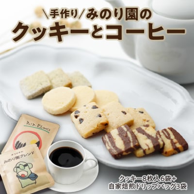 3みのり園の手作りクッキー(8枚入6袋)とフリゴレスの自家焙煎ドリップバッグ3袋ギフトセット