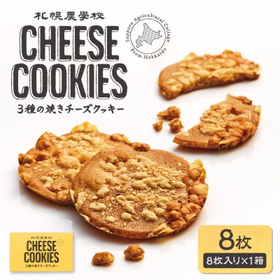 ~3種のチーズが織りなす焼き上げた香ばしさと濃厚さ~北海道産素材を使ったクッキー生地にパルメザンを練り込み、3種類のチーズを表面にのせて焼き上げました。チーズのコクとカリカリ食感が楽しめるチーズクッキーです。|札幌農学校