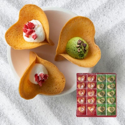 お花の形のかわいいラングドシャ。人気のバニラとほろ苦い大人の抹茶のセット[ 京都 老舗 和菓子 千寿せんべい 有名店 ラングドシャ 人気 おすすめ お菓子 スイーツ 洋菓子 花 お取り寄せ 通販 ギフト プレゼント 贈答 ふるさと納税 ]