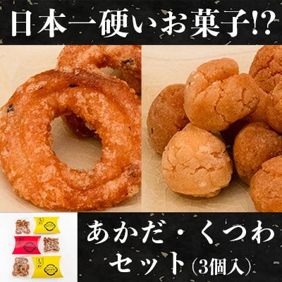 3日本一硬いお菓子!?古えより伝わる伝統の銘菓「あかだ・くつわセット(3個入)」