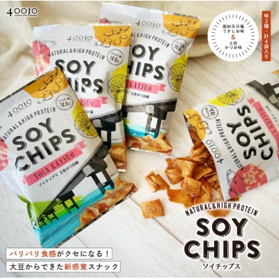 15パリパリ食感がクセに!大豆からできたソイチップス (高知天日塩うすしお味・土佐かつお味 各2袋)26