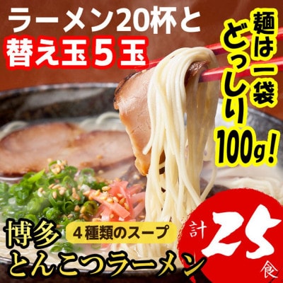 1博多とんこつラーメン20杯分と替え玉5玉の計25食分 4種類のスープ(麺は1袋100G)(篠栗町)