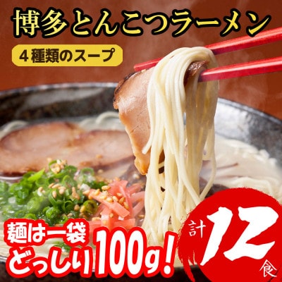 4福岡ブランド 博多とんこつラーメン12食 4種類の本場博多の福岡産スープ(麺1袋100G)篠栗町