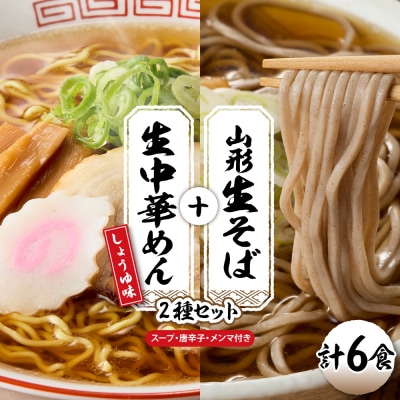 68山形生そば+生中華めん6食セット(しょうゆ)山形県 東根市 神町食品提供 hi095-014-1