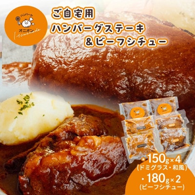 40【九州産牛豚肉と佐賀白石産玉ねぎを使った手作りの味】ふわふわハンバーグ6個&ビーフシチュー4個セット