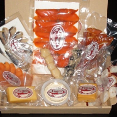 魚介とチーズ計8種のスモークの詰め合わせセットです。昔ながらの方法で北海道のミズナラのおがくずでスモークした逸品。岩塩原料の「あらしお」と僅かのグラニュー糖、京都の千鳥酢、岐阜の白扇味醂を使用し、化学調味料等の添加物は一切使用していません(プロセスチーズを除く)。自然派のスモーク、オホーツクの「海と森」を化粧箱に入れてお届けします!フューモアールで定番人気のスモークサーモンが2種類!
