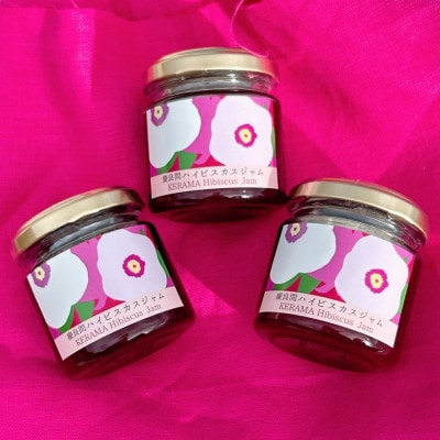 座間味村産ハイビスカスを使用し、村内で丁寧に手作りしたジャム3個セット。