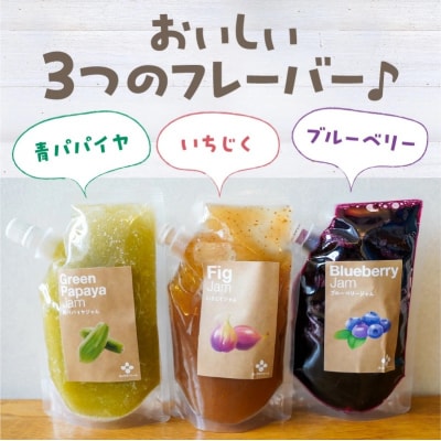 こだわりの青パパイヤ、完熟いちじく、完熟ブルーベリーのジャムセットです