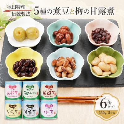 98秋田特産 伝統製法 煮豆6缶[小豆](330g/5号缶)[No.5325-0324]