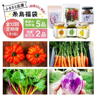 2【全12回定期便】朝採りオーガニック旬野菜5品+糸島産 大ヒット特産加工品2品セット[AGE032]