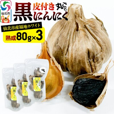 24秋田県 仙北市産 皮付き 丸ごと 黒にんにく 80g×3パック計240g|02_bkf-050301