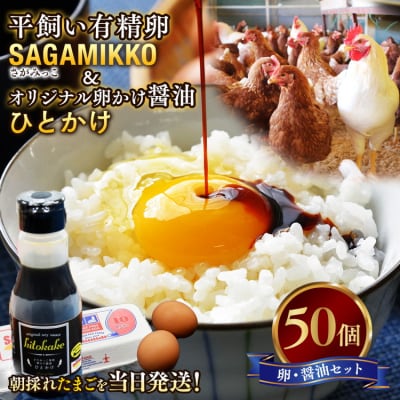 11平飼い有精卵「さがみっこ」50個+オリジナル卵かけ醤油「ひとかけ」1本 ※離島への配送不可