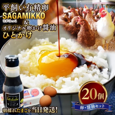 3平飼い有精卵「さがみっこ」20個+オリジナル卵かけ醤油「ひとかけ」1本 ※離島への配送不可