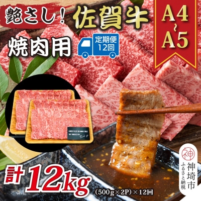 73【12か月定期便】【A4~A5】佐賀牛焼肉用 1kg(小分け)×12回(H112171)