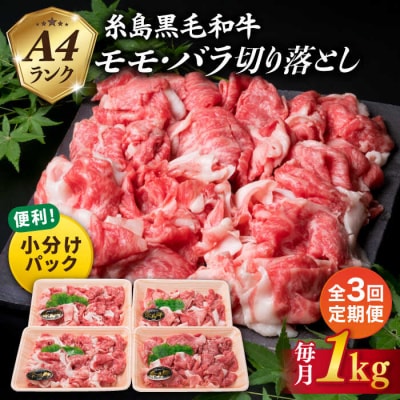 4【全3回定期便】A4ランク 糸島 黒毛和牛 切り落とし 1kg×3回[ACA145]