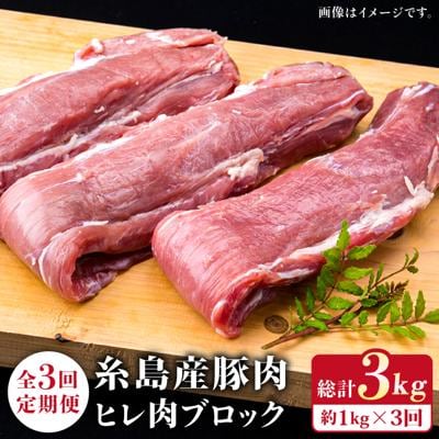 38【全3回定期便】糸島産豚肉 ヒレ肉 ブロック 1kg (1本350g前後×3本)[ACA233]