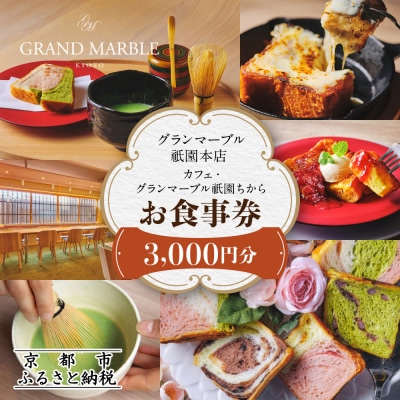 グランマーブル祇園本店 2階の「カフェ・グランマーブル祇園ちから」でご利用いただけるお食事券3,000円分(1,000円分×3枚)※お食事券は、グランマーブル祇園本店のみ、商品の購入にもご使用いただけます。他店舗ではご使用いただけません。