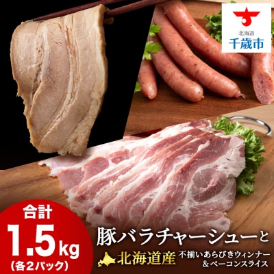 6豚バラ チャーシュー・不揃いベーコン・不揃いウィンナー 各3袋 アソートセット ≪ 肉の山本 ≫