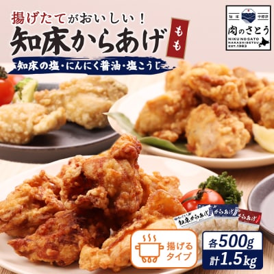67【揚げるタイプ】知床からあげ【知床の塩・にんにく醤油・塩こうじ】 もも1.5kgセット【35050】