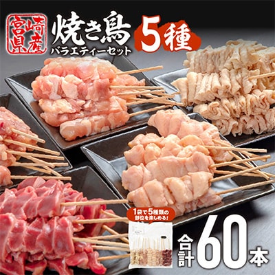 95【国産】焼き鳥セット 5種 60本 盛り合わせ (10本×6パック) もも ぼんじりなど食べ比べ