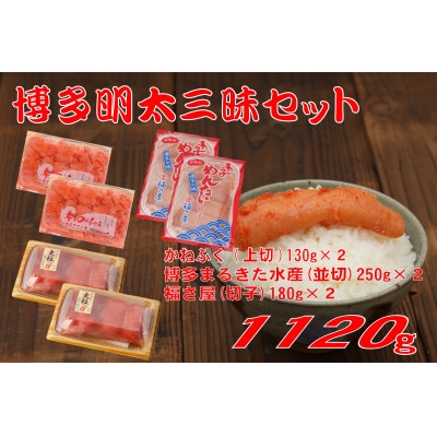 「博多あごおとし」でおなじみの博多まるきた水産、かねふく、福さ屋の辛子明太子のセットです。