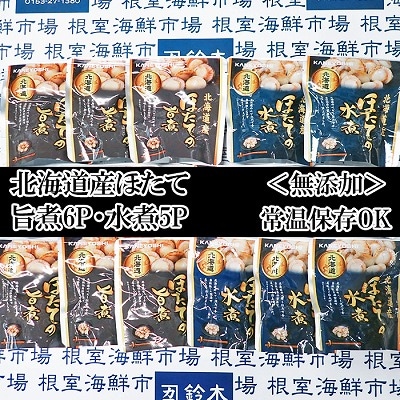 【年内配送可】根室海鮮市場<直送>無添加ほたての旨煮6P、ほたての水煮5P A-28250
