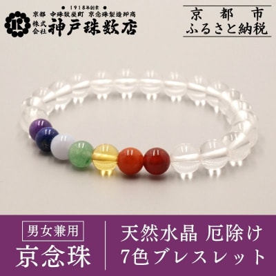 【神戸珠数店】〈京念珠〉天然水晶 厄除け7色ブレスレット|京都 念珠 仏具 アクセサリー お守り
