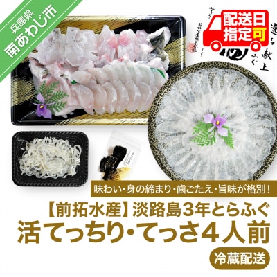73【冷蔵配送】淡路島3年とらふぐ(活てっちり・てっさ4人前)◆配送期間10月25日~3月31日