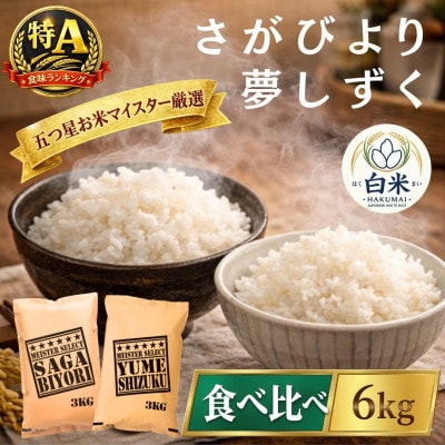 29令和7年産さがびより白米3kg、夢しずく白米3kg(計6kg)五つ星お米マイスター厳選(吉野ヶ里町)