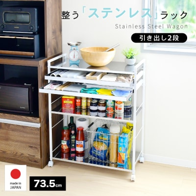 マルチに使える スタイリッシュで清潔感のあるステンレス製ワゴン 日本製 キッチン 収納 ホワイト トロリー キャスター 燕三条
