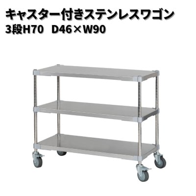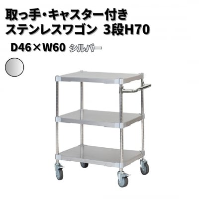 91取っ手・キャスター付きステンレスワゴン3段H70 46×60 シルバー 【334S004】