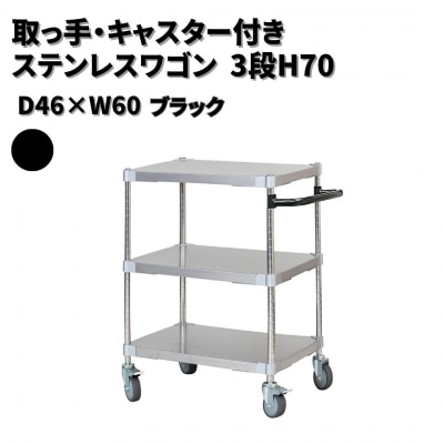 90取っ手・キャスター付きステンレスワゴン3段H70 46×60 ブラック 【334S001】