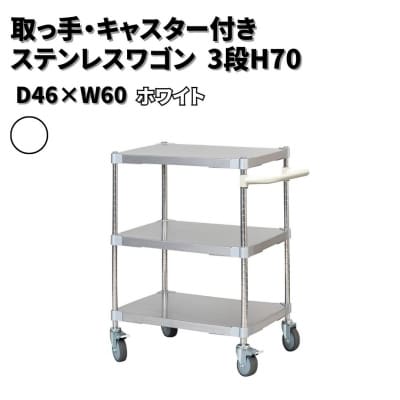 92取っ手・キャスター付きステンレスワゴン3段H70 46×60 ホワイト 【334S005】