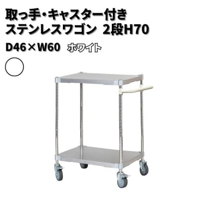 95取っ手・キャスター付きステンレスワゴン2段H70 46×60 ホワイト 【257S007】