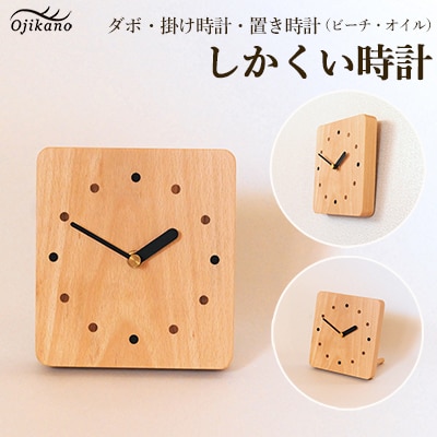 72しかくい時計【ダボ】掛け時計/置き時計【ビーチ材使用・オイル仕上げ】【大鹿野工房】【89-7】