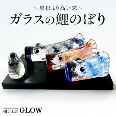 ~端午の節句を硝子で彩る <屋根より高い志>~札幌出身のガラス工芸作家水木一成が生み出す硝子の鯉のぼりは、菖蒲の花の横で親子3匹の鯉が泳ぐ、ガラスの中に気泡を閉じ込め和洋あらゆるシーンに合う洗練されたデザインが特徴。端午の節句をガラスで彩る。お祝いはもちろん、インテリアとして飾る方も多い一品です。