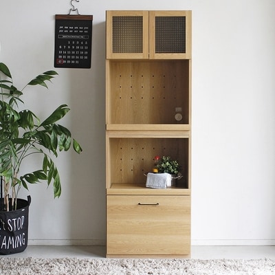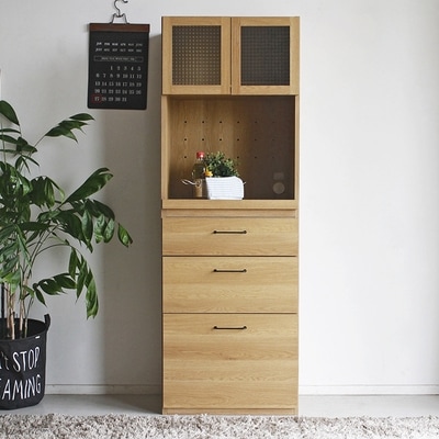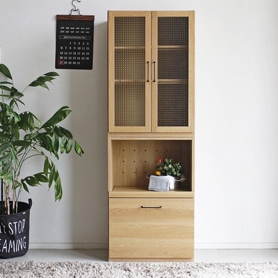 【完成品】やさしい木目のナチュラルベージュとシルバーのコントラストがオシャレなシャビーナチュラル色の食器棚。キッチンはもちろんリビングでもご使用いただけます。