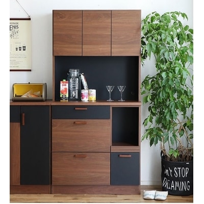【完成品】黒とブラウンの上質なコントラストがオシャレな食器棚。安心・安全の国産家具です。リビングの収納棚としてもご使用いただけます。組み合わせが選べるダイニングボード。