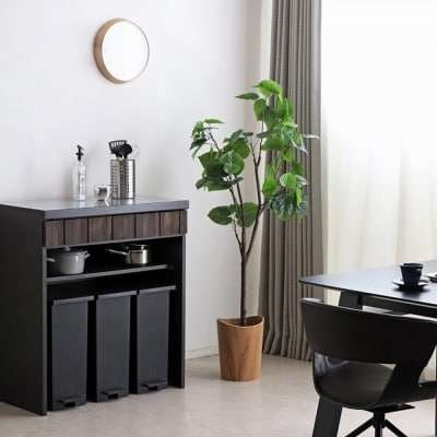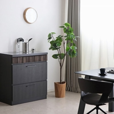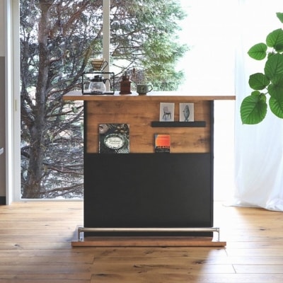【完成品】黒とブラウンの上質なコントラストがオシャレな収納棚。キッチンはもちろんリビングでも収納カウンターとしてご使用いただけます。