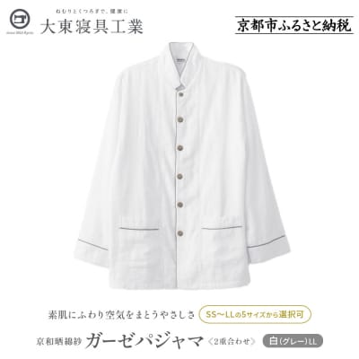 20【大東寝具】京和晒綿紗 ガーゼパジャマ 2重合わせ 白 男女兼用サイズ(グレー L)