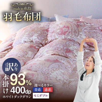 32【訳あり】羽毛 布団 本掛け 柄おまかせ フランス産 ダウン93%【セミダブル】 [AYM038]