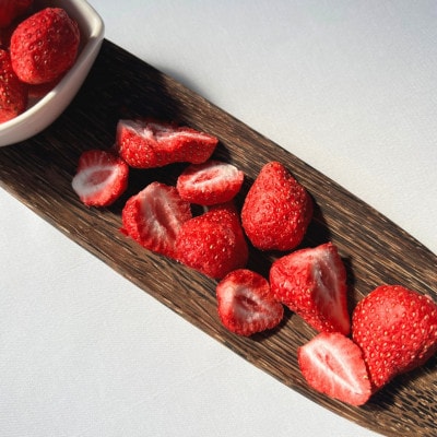 食べやすくカットしたフリーズドライいちご。 楽しみ方は自由自在