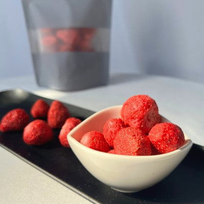 上品な甘酸っぱさとサクふわ食感がクセになる丸ごとフリーズドライ。 いつでもどこでも手軽にパクっと。