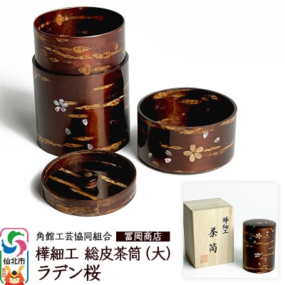 60角館樺細工《冨岡商店》総皮茶筒大(ラデン桜)桐箱入り|02_kdk-105701
