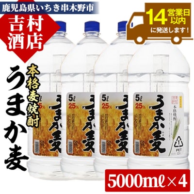 本格麦焼酎「うまか麦」飲みたごえセット 5L×4本 計20Lお届け♪