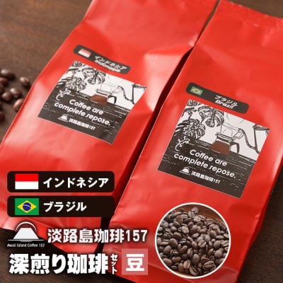 【淡路島珈琲157】深煎り珈琲セット 豆のまま 200g×2個 コーヒー aa38825