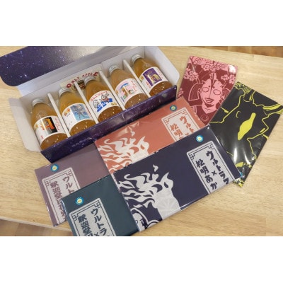4須賀川市オリジナルウルトラマンりんごジュース&手拭いセット