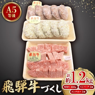 A4ランク博多和牛ヒレ肉サイコロ ステーキ 300g/生ハンバーグ130g×3個 [ACA052]